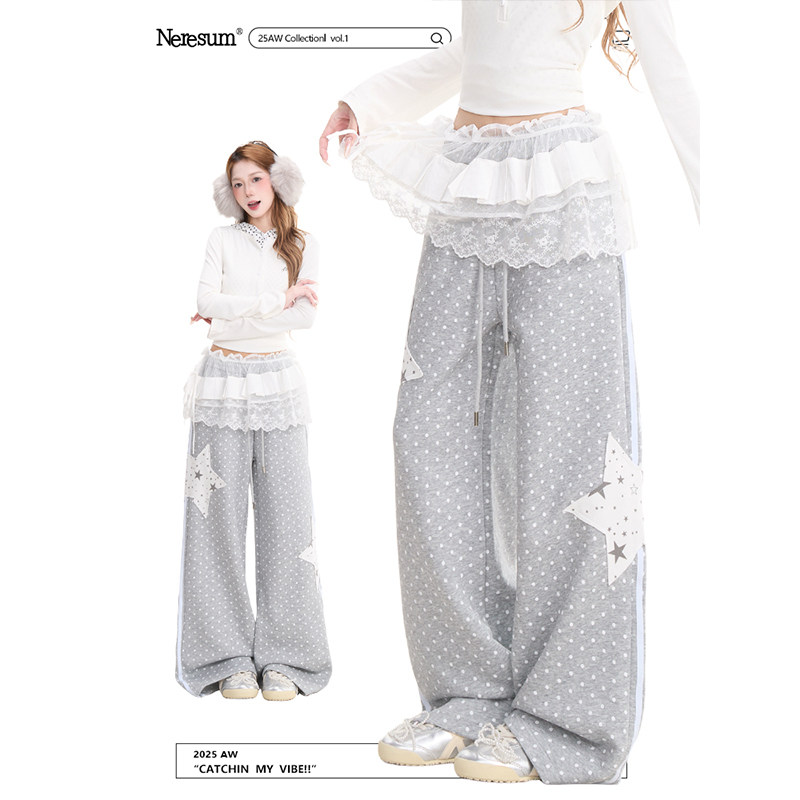 NERESUM polka dot full print star patch sweatpants women's new retro slimming straight-leg pants draped slacks