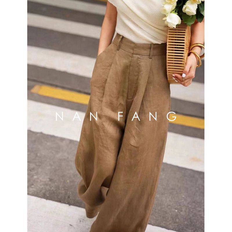 CHAO level recommendation! Coffee linen wide-leg pants, women's high-waisted draped slacks, design sense fashionable cotton and linen trousers