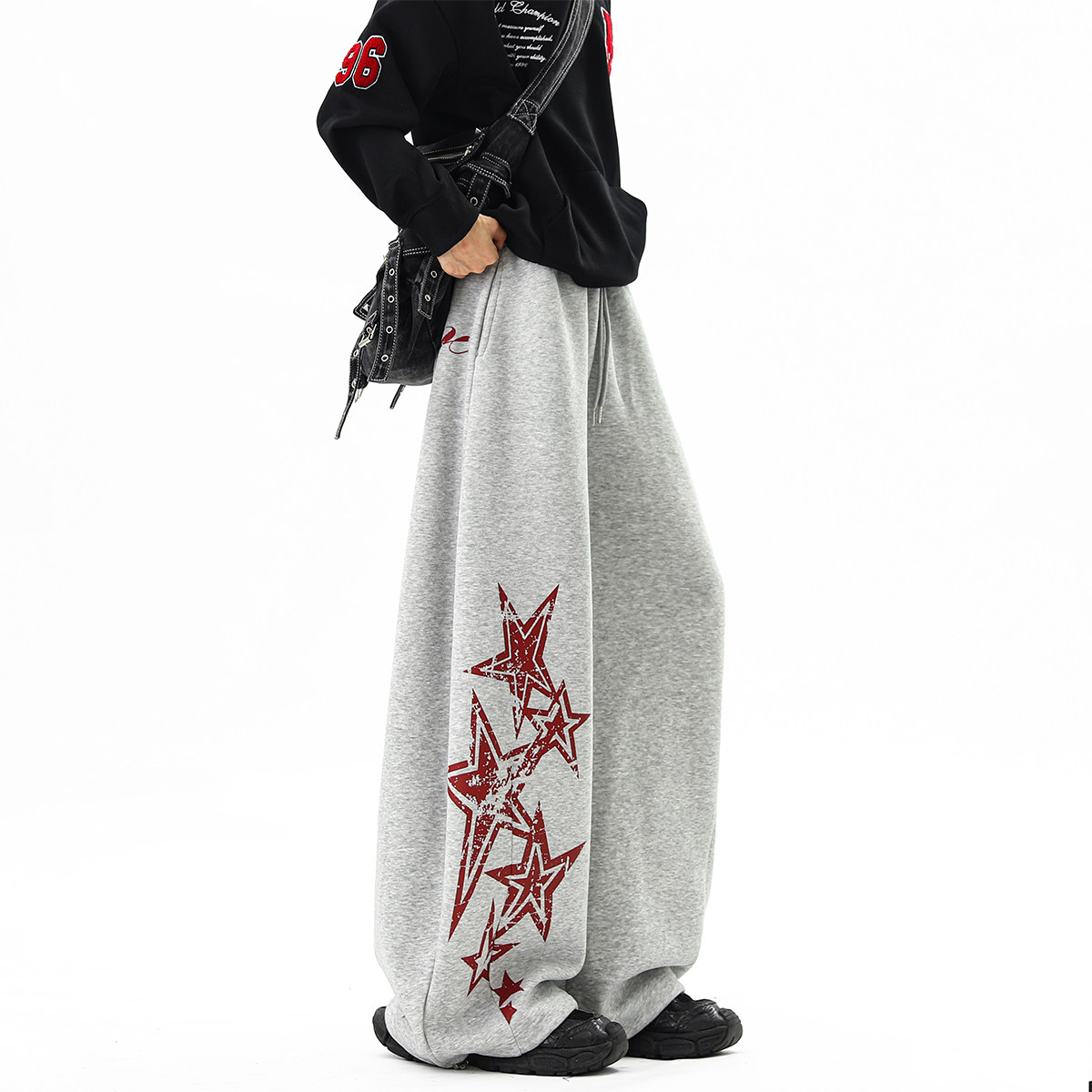 American high street star print scimitar sweatpants women's and men's autumn vibe versatile wide-leg pants loose casual floor-length pants