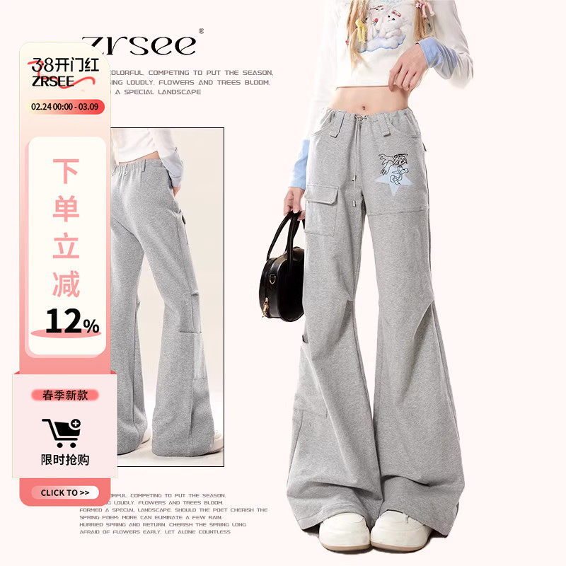 Narrow banana wide-leg pants women's 2026 new spring and autumn gray small loose casual straight sports sweatpants