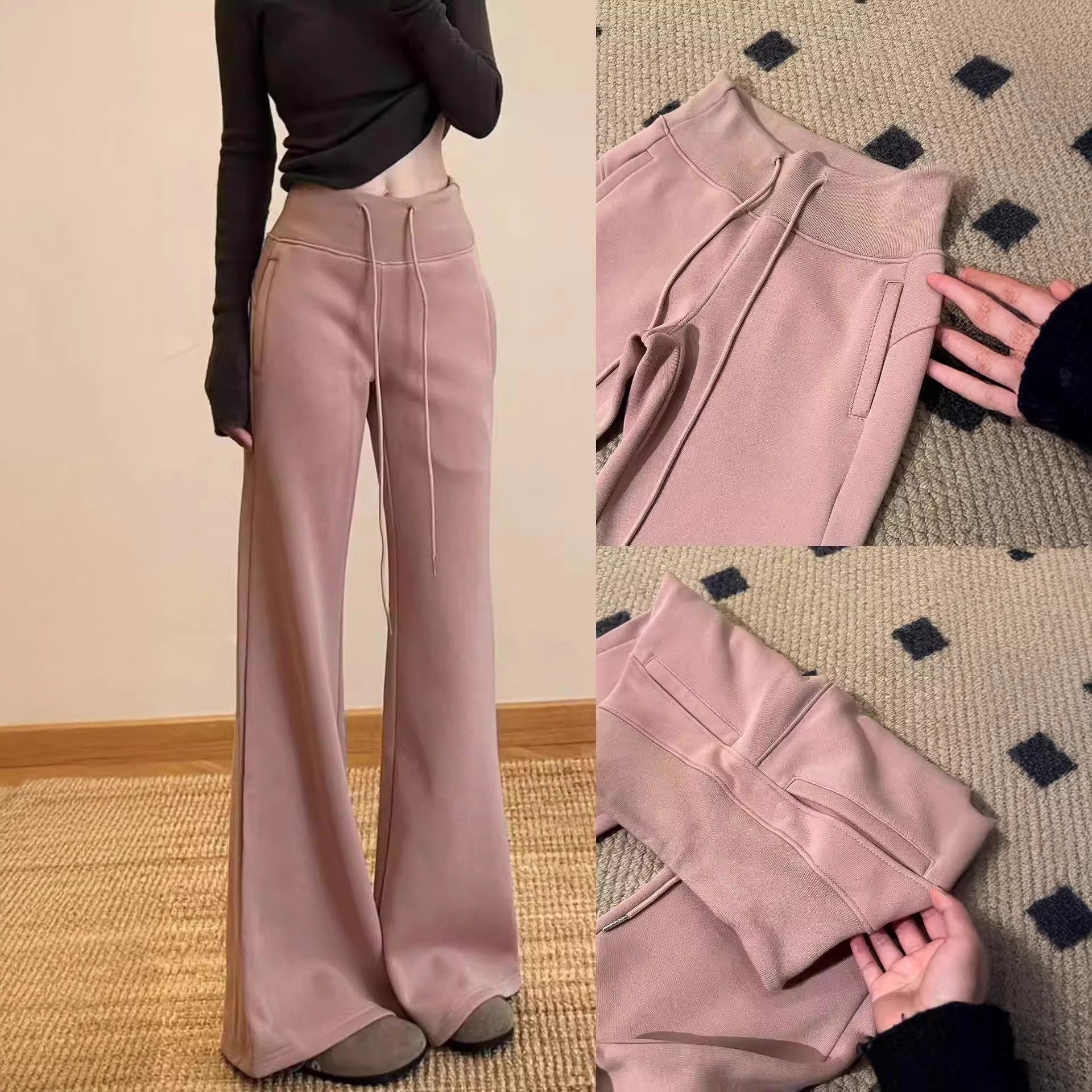 Clear warehouse pick-up leak ~ narrow version of fleece wide-leg pants for women in autumn and winter slim drape small straight knitted casual pants