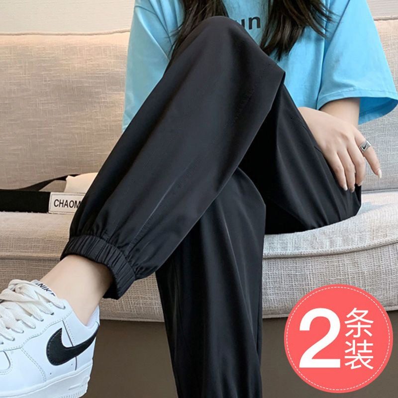Summer thin ice silk bloomers, women's loose fat MM slimming, high waist, leg ties, sports small mosquito-repellent radish pants