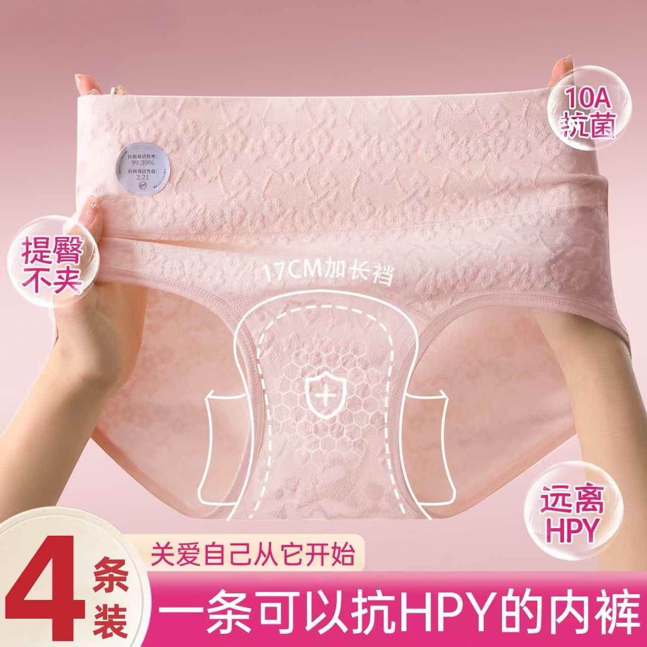 Class A cotton underwear women's pure cotton high-waisted 10A antibacterial cotton extended crotch comfortable and breathable plus-size women's briefs