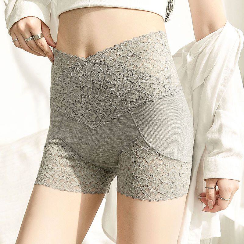 High-waisted safety pants, lace women's anti-exposure leggings, crotch-free underwear, plus-size fat MM, abdominal tuck-in safety shorts