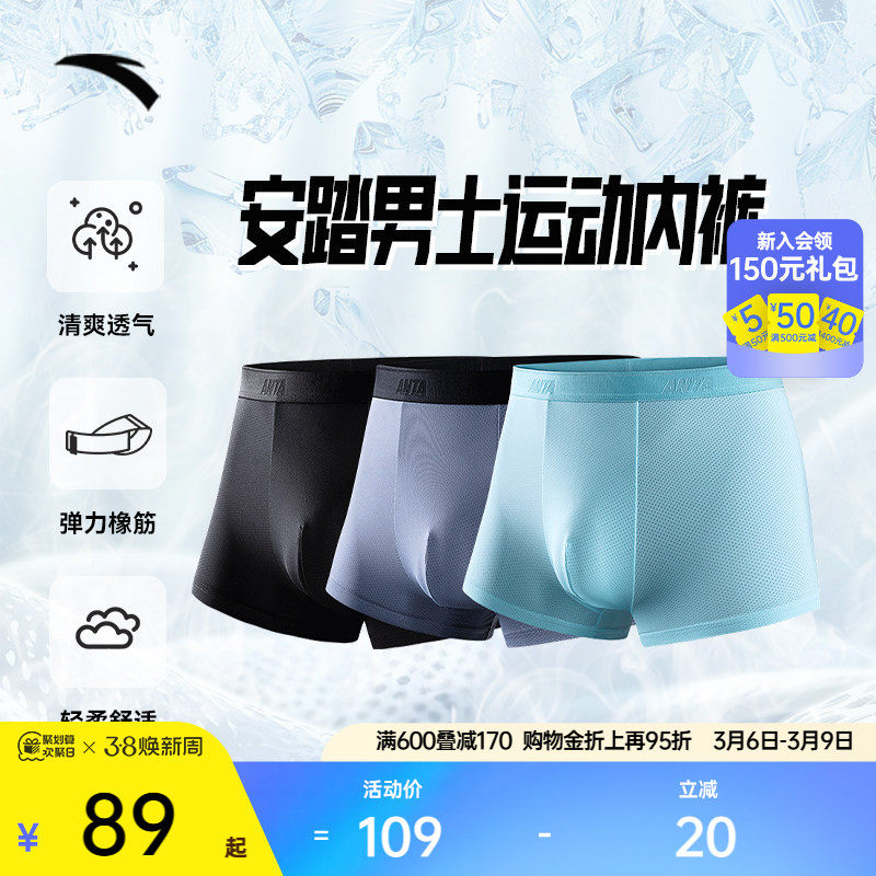Anta sports underwear three pieces, men's light thin ice silk, skin-friendly, breathable, quick-drying, anti-odor, running underwear, mid-waisted pants