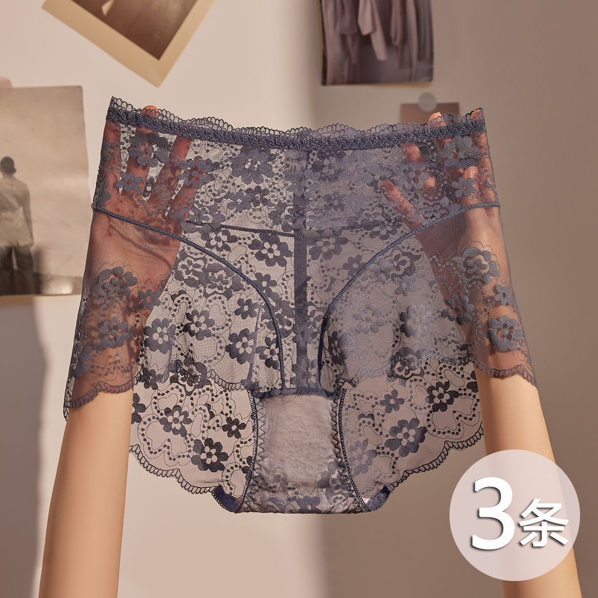 High-waisted lace panties women's abdominal lift antibacterial thin briefs sexy mesh non-marking body shaping pants women