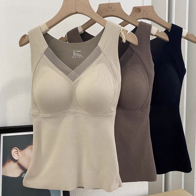 Popular German velvet graphene warm and heating vest women's V-neck vest no bra all-in-one cup autumn and winter new style