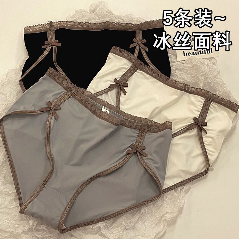 5 pairs of ice silk panties women's Japanese seamless mid-high waist plus size antibacterial buttocks lifting summer breathable girl student pants women