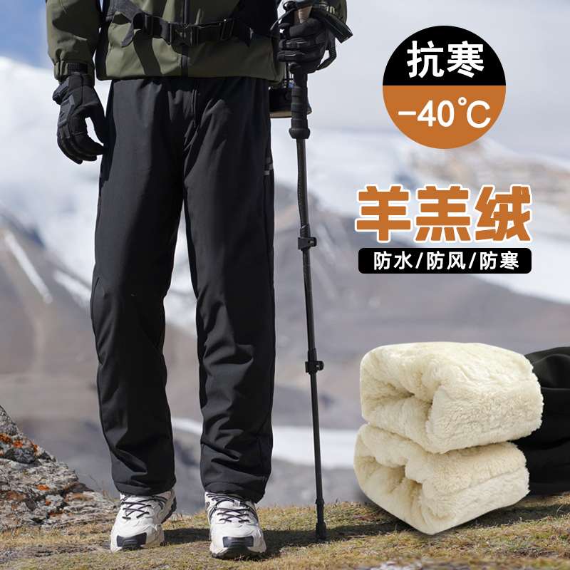 Outdoor jacket pants, men's fleece thickening, winter windproof waterproof, plus size warm, travel hiking pants, spring and autumn
