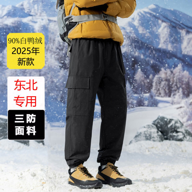 Northeast Harbin down pants wear snow town assault pants on top of men's and women's waterproof Mohe wearing Changbai Mountain cold-proof equipment