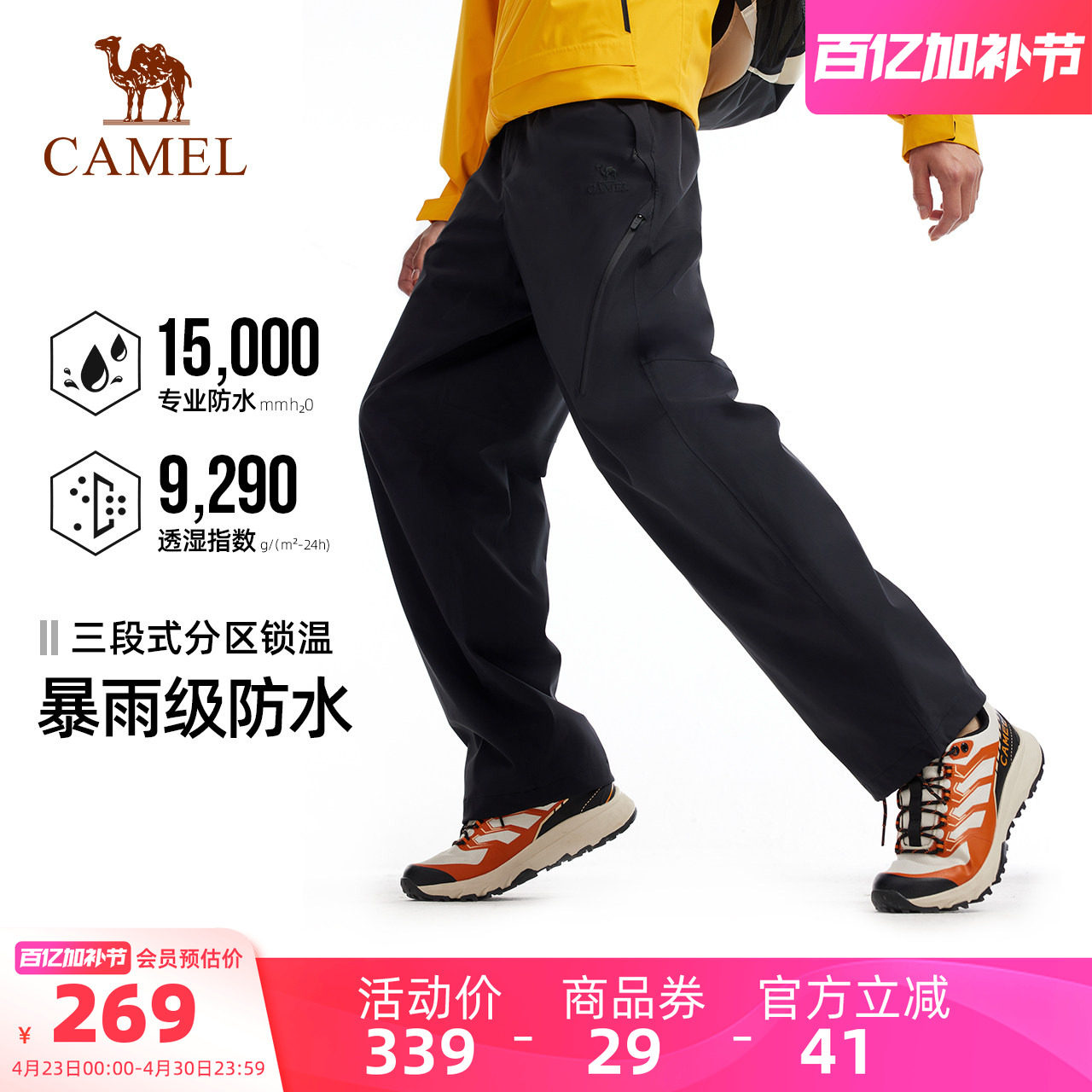 Camel outdoor assault pants for men in spring windproof waterproof and breathable wear-resistant tear resistance hiking soft shell trousers for women