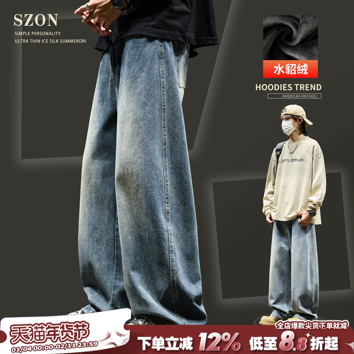 American Retro Plush Jeans Men's Fall/Winter 2025 New Loose Straight Pants Men's Spring and Autumn Washed Slacks