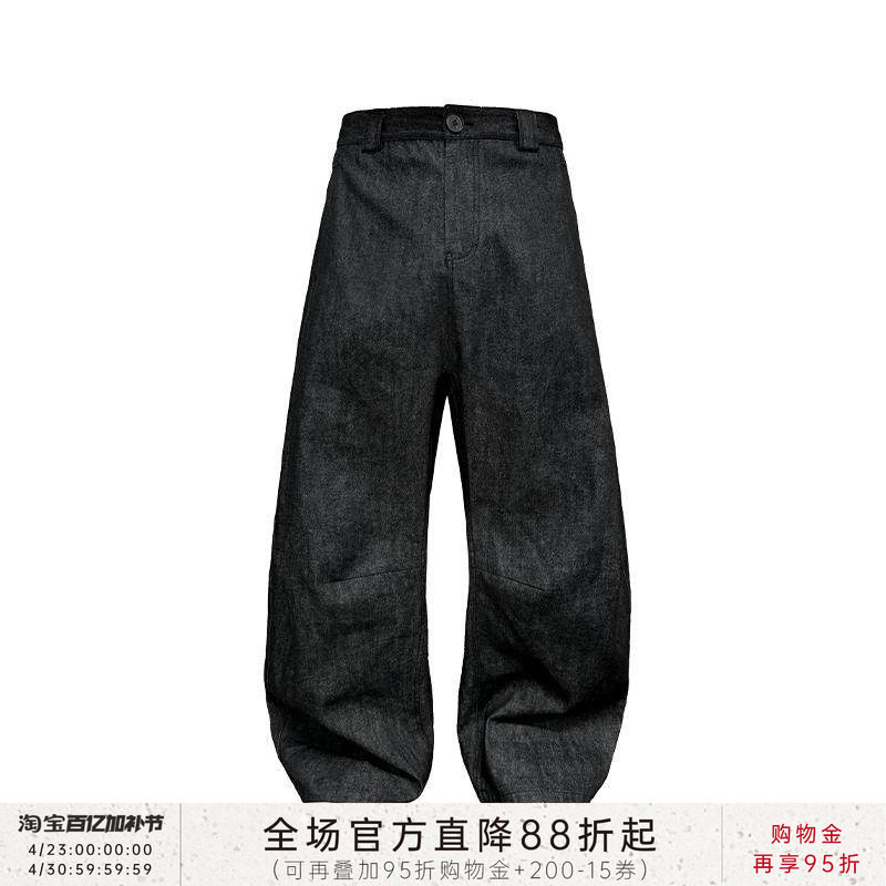 JCAESAR DENIMS Low Rise Pleated Raw Cow Knee Pleats Double Stitch Structural Line Wide Scimitar Silhouette