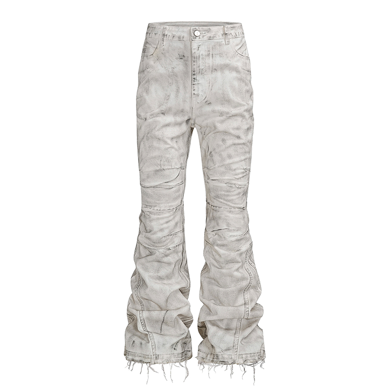 GOJOYJINNI Dark Niche Metal Hand-Brushed Wax Coated Washed Mopping Micro Flared Jeans