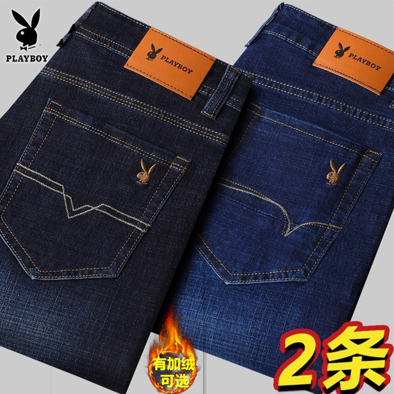 Playboy genuine autumn and winter explosive jeans men's straight loose stretch fleece thickened long pants men's