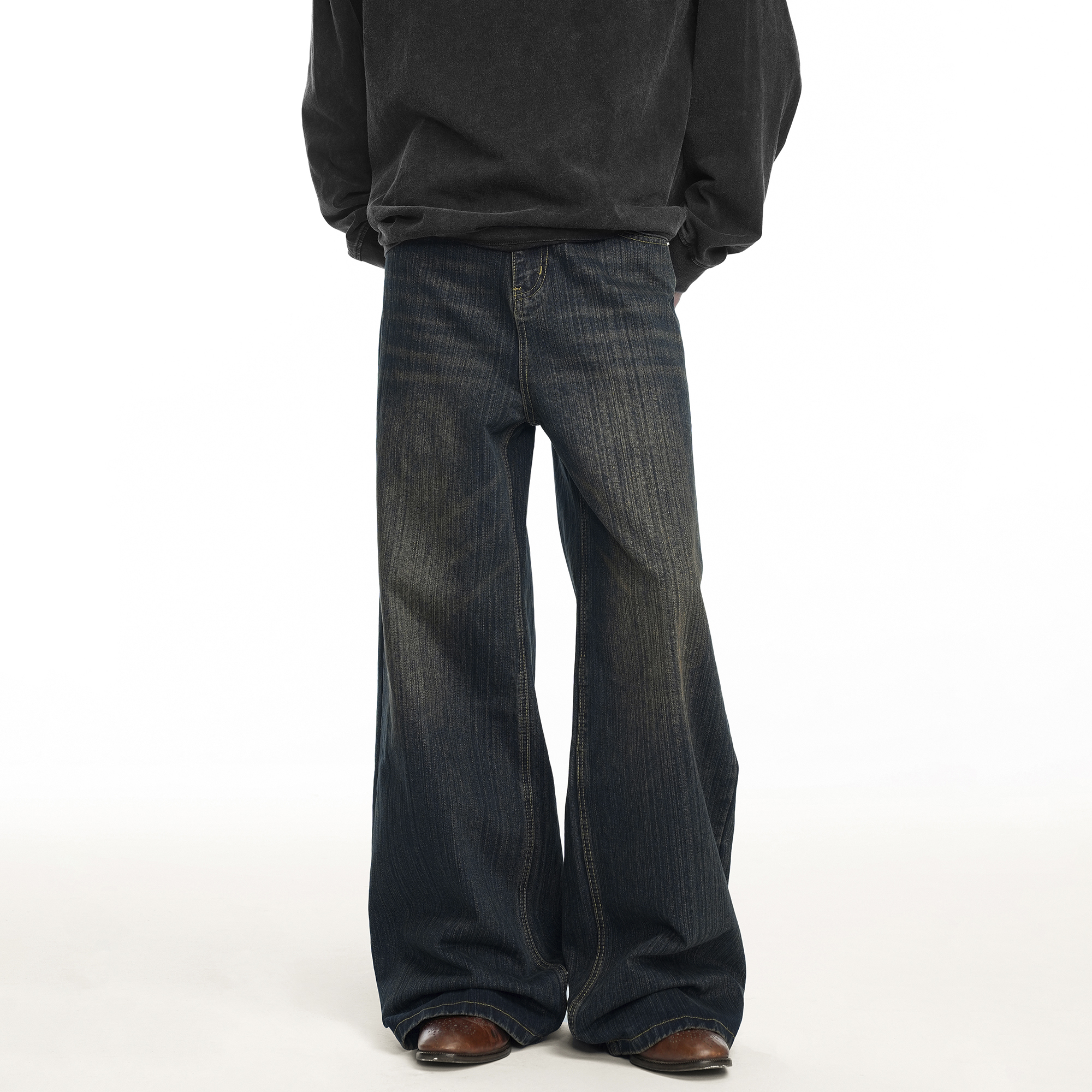 THUMPUP Niche high-end floor-length jeans men's American vintage straight loose wide-leg pants