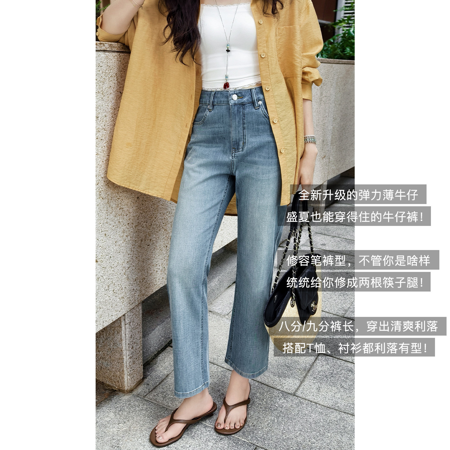 Tencel straight-leg jeans women's summer thin plus-size fat mm pear-shaped figure slimming narrow version of cropped wide-leg pants