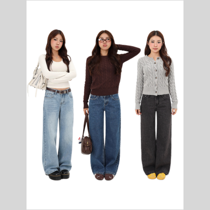 pusumede's own money! White wide-leg jeans, women's high waist, loose and slim, casual and versatile straight-leg trousers