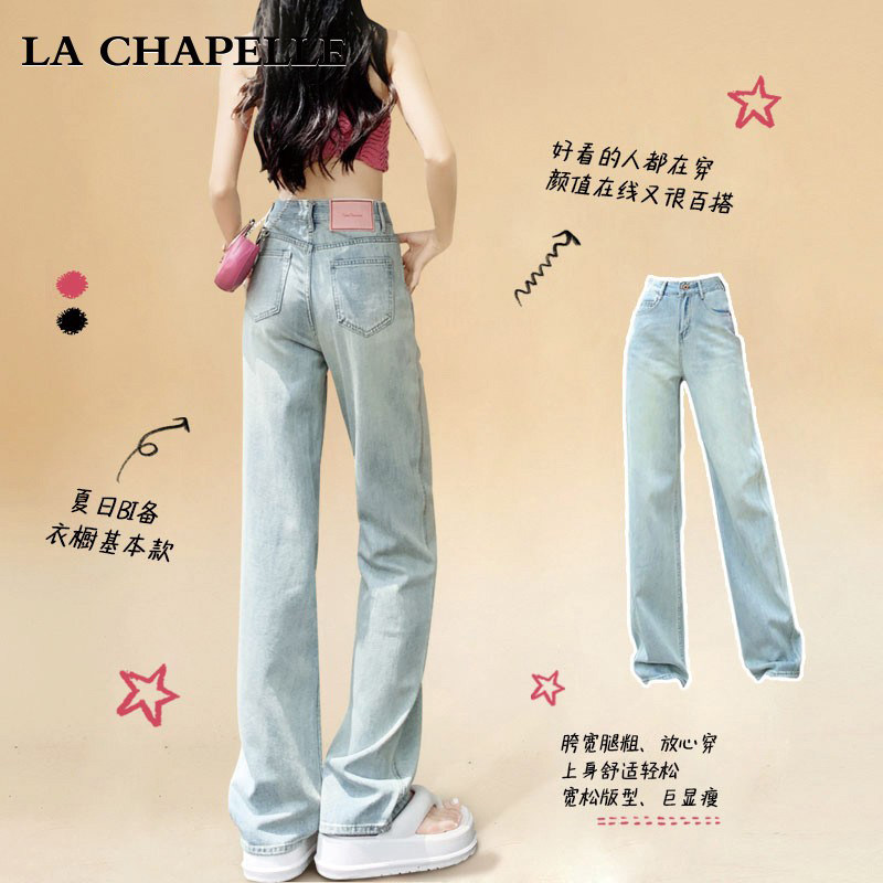 La Chapelle Light Narrow Wide-Leg Jeans Women's Winter 2026 New High-Waisted Loose Straight Fleece Pants