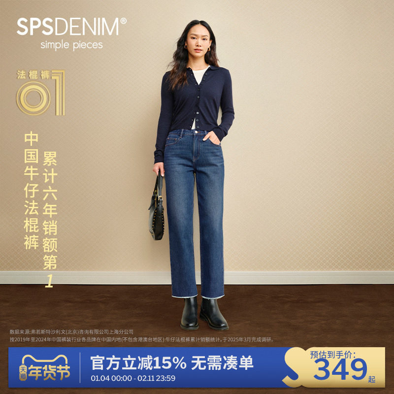 【New color baguette pants】 simplepieces spring new SPS jeans women's small cropped straight pants