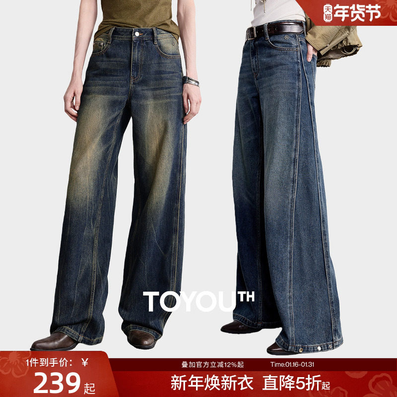 American retro low-rise wide-leg jeans for women 2026 spring and autumn new loose small hot girl micro-flared pants
