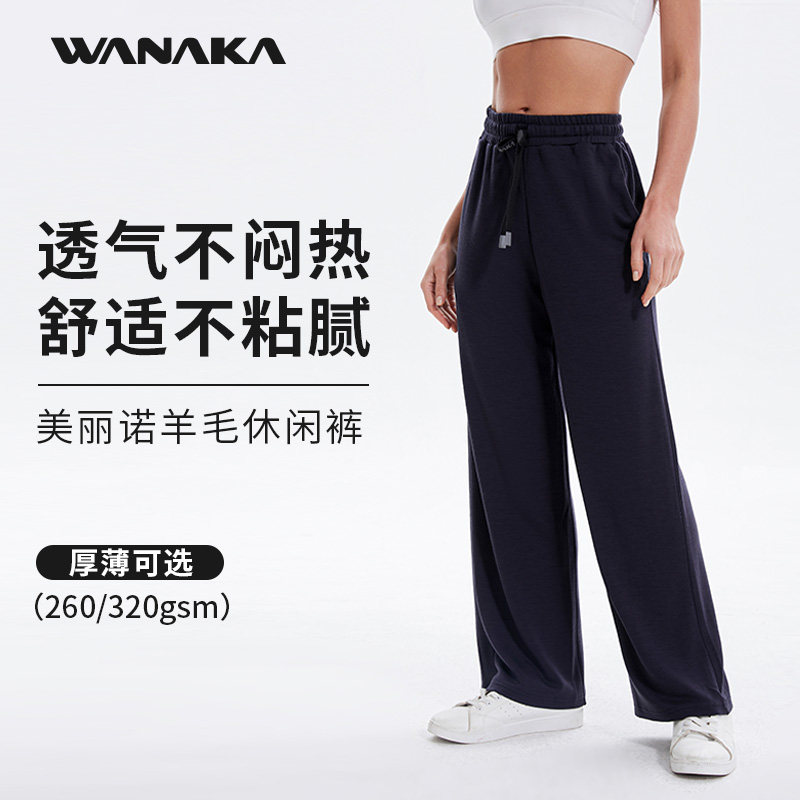 WANAKA merino wool mid-high waist wide-leg pants women's drape feel straight and breathable quick drying slim slim autumn and winter