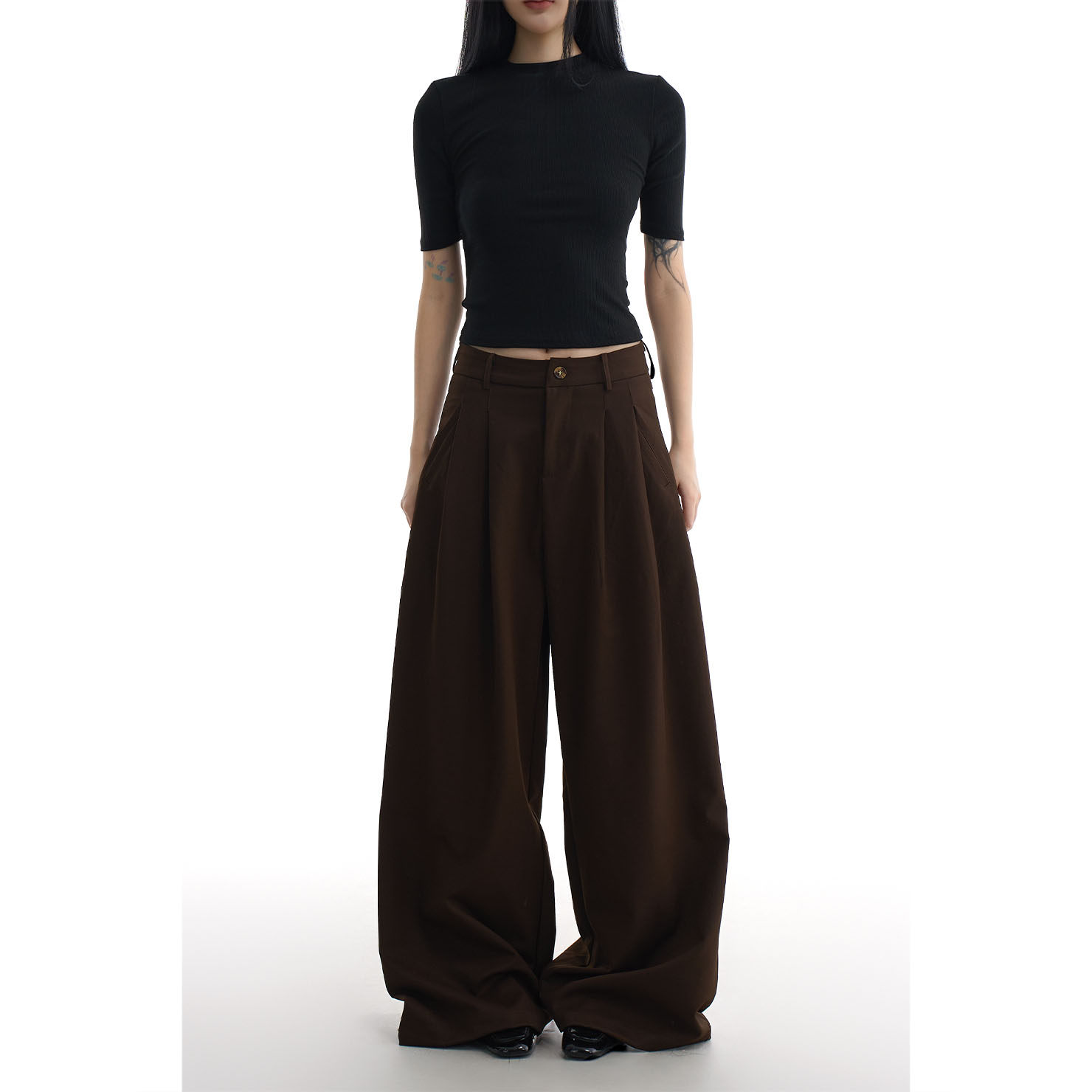 AGUA Maillard brown wide-leg suit pants women's spring new design high-waisted loose drape straight trousers