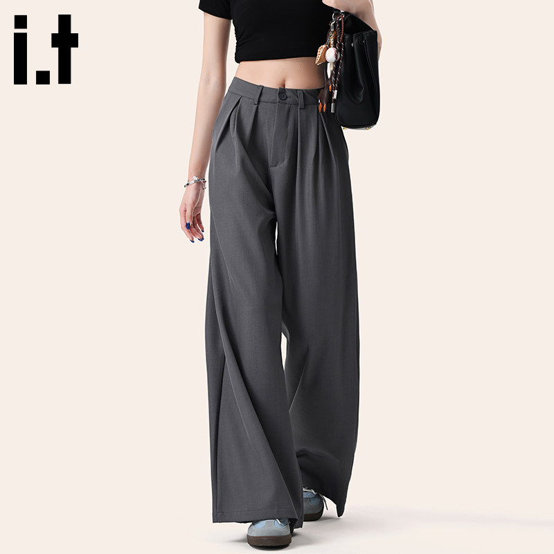 it :CHOCOOLATE gray high-end simple suit wide-leg pants women's new summer drape slim trousers