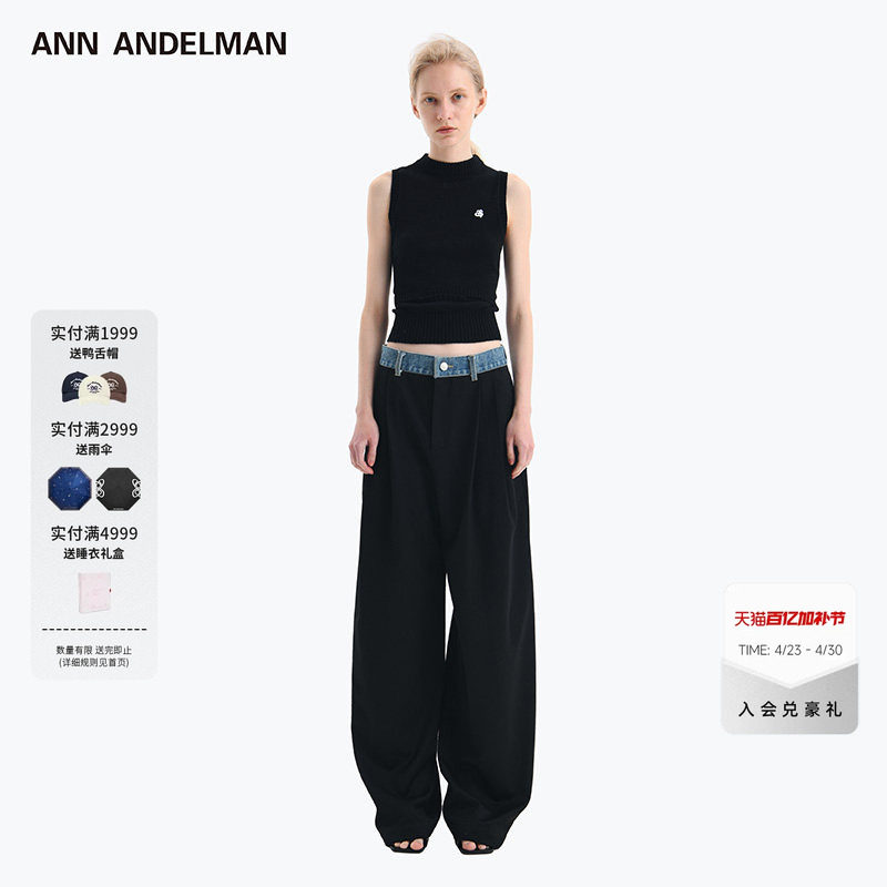 ANN ANDELMAN official direct sales denim waist spliced trousers straight-leg trousers
