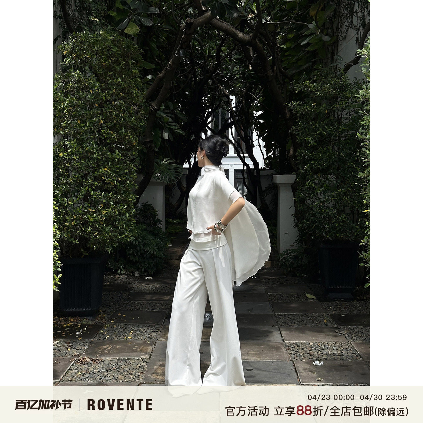 Rovente White and White Pants Women's Autumn Casual Drape High-Waisted Straight-Leg Pants