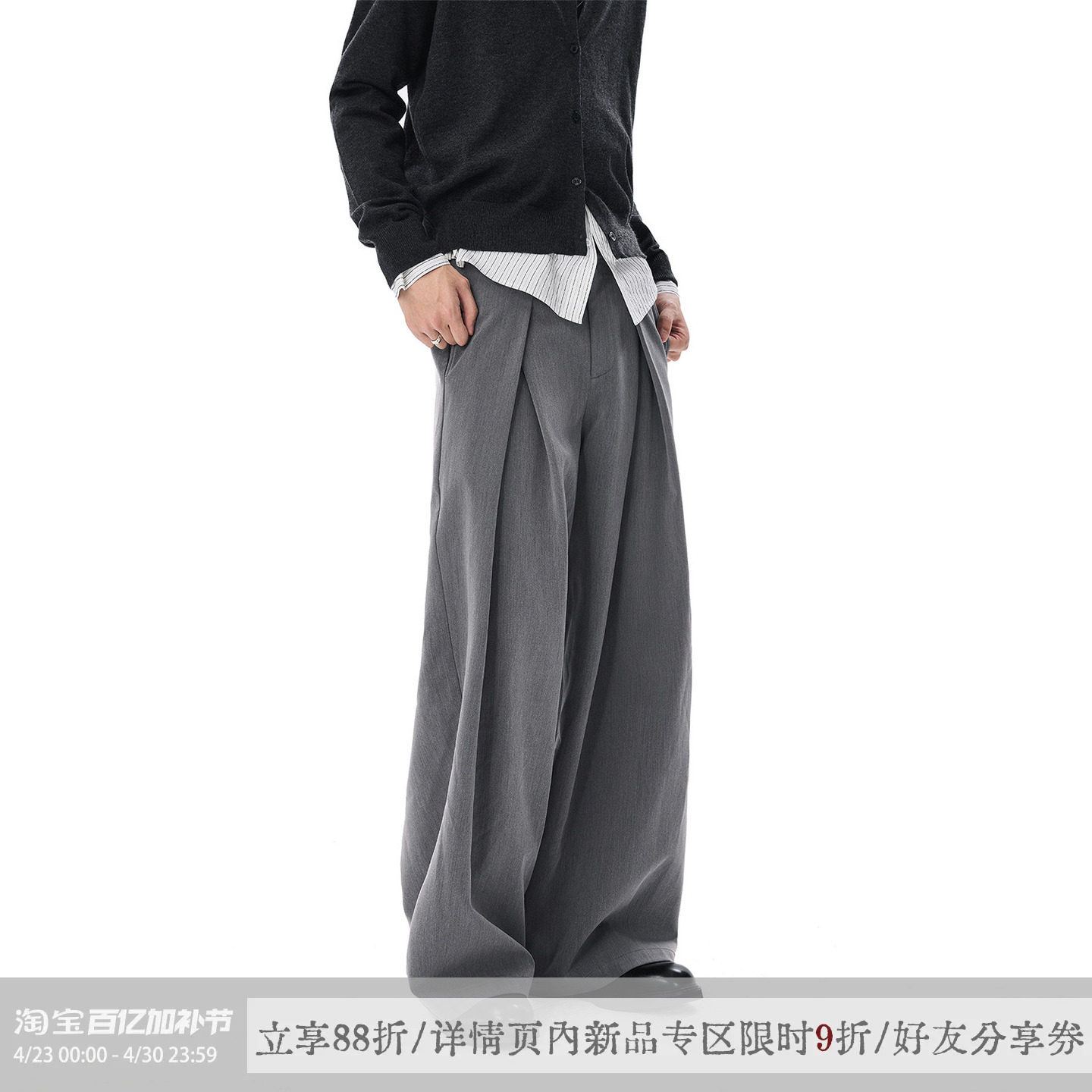 sameuoo free-range culture gray straight trousers spring and summer anti-wrinkle and easy to care for three-dimensional I-pleats neutral style