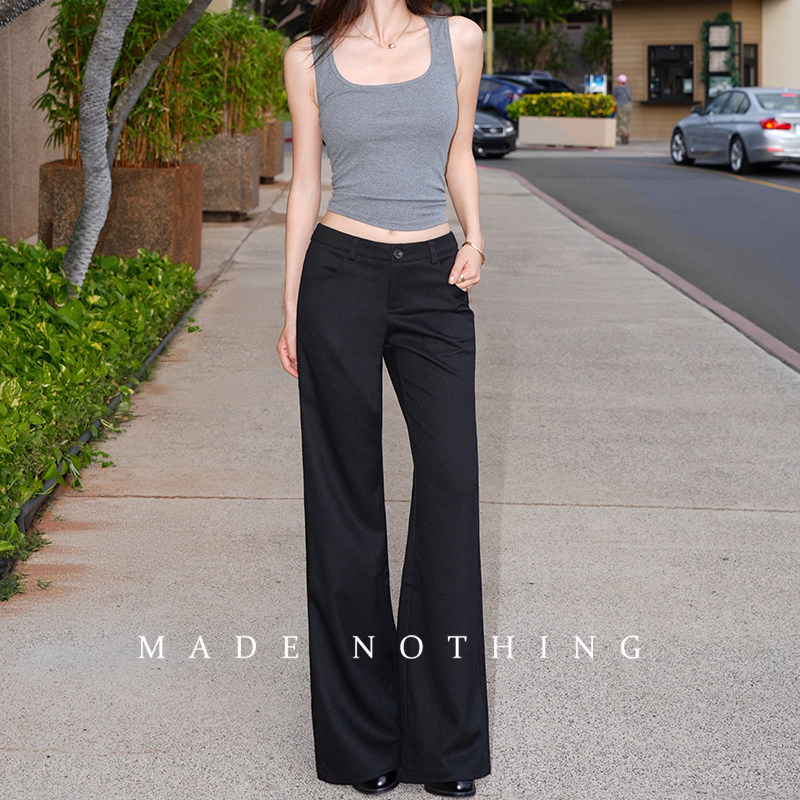 Black micro-flared suit pants women's 2026 spring new low-waisted slimming drape floor-length hot girl elongated horseshoe pants