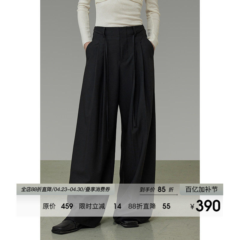 UNSPOKEN Black Lace-up Pleated Wide-leg Pants Women's Spring 2026 New Loose High-End Slim Pants