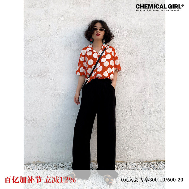 Cat pants summer thin high-waisted counter quality black acetic acid slimming anti-wrinkle micro-flared commuter trousers