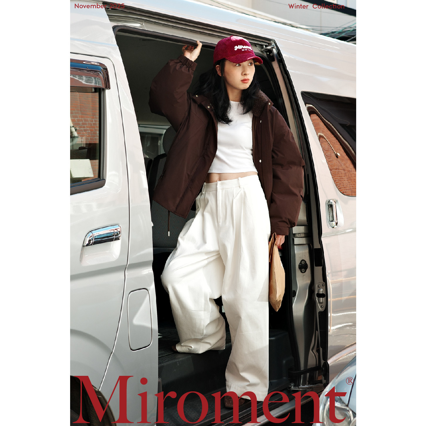 Miroment Pear-shaped Tiancai Pants Angora Red/White Cotton Thick Twill High-Waisted Wide-Leg Pants All Seasons