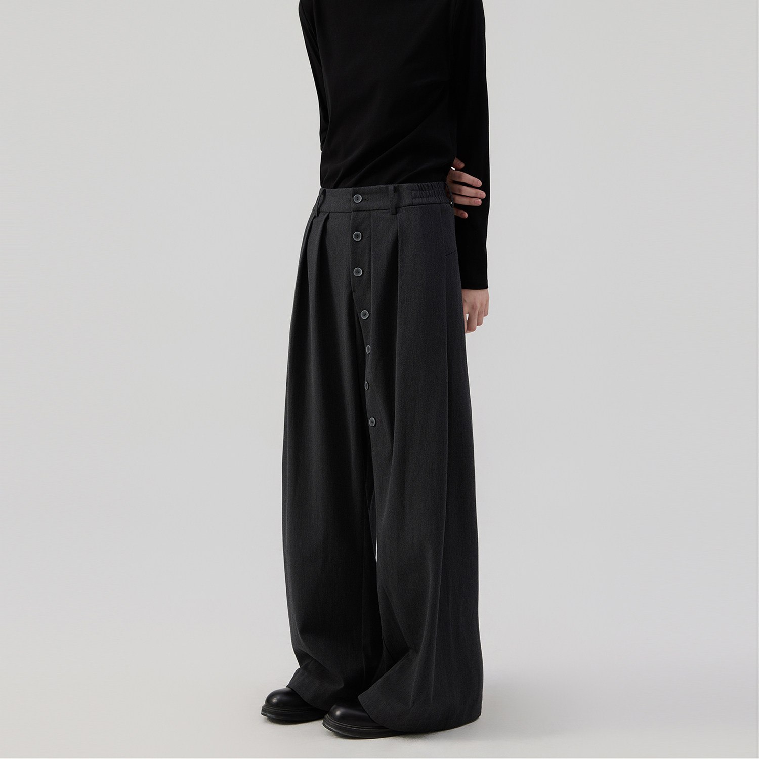 sameuoo free-range culture "hidden" breasted design gray slacks women's autumn and winter loose neutral trousers
