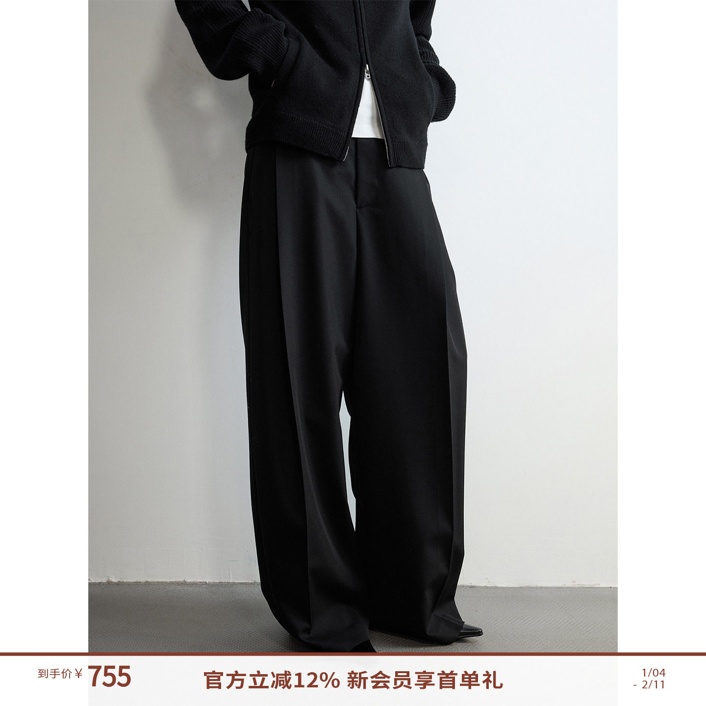 RandomPiece 25 Winter 100 Australian Merino wool silhouette single-pleated design loose-fitting suit trousers