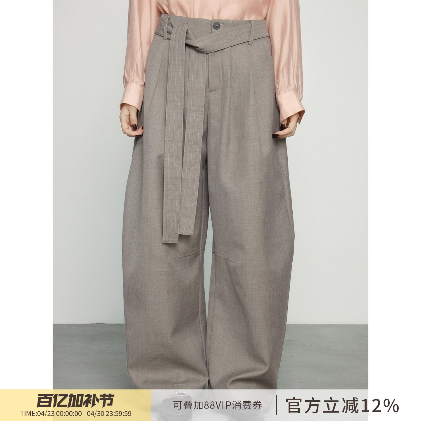 KEARA three-dimensional split pleated wide-leg trousers high-waisted strap drape loose floor-length scimitar slacks for women