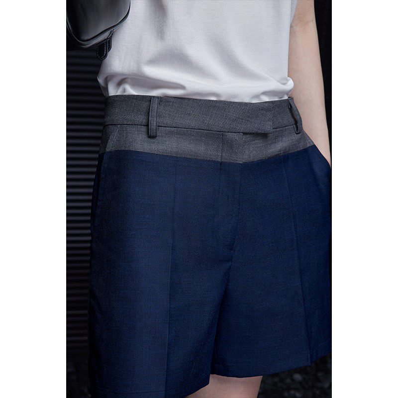 moment navy blue contrast suit shorts women's 2025 summer new drape, high-end design, and versatile