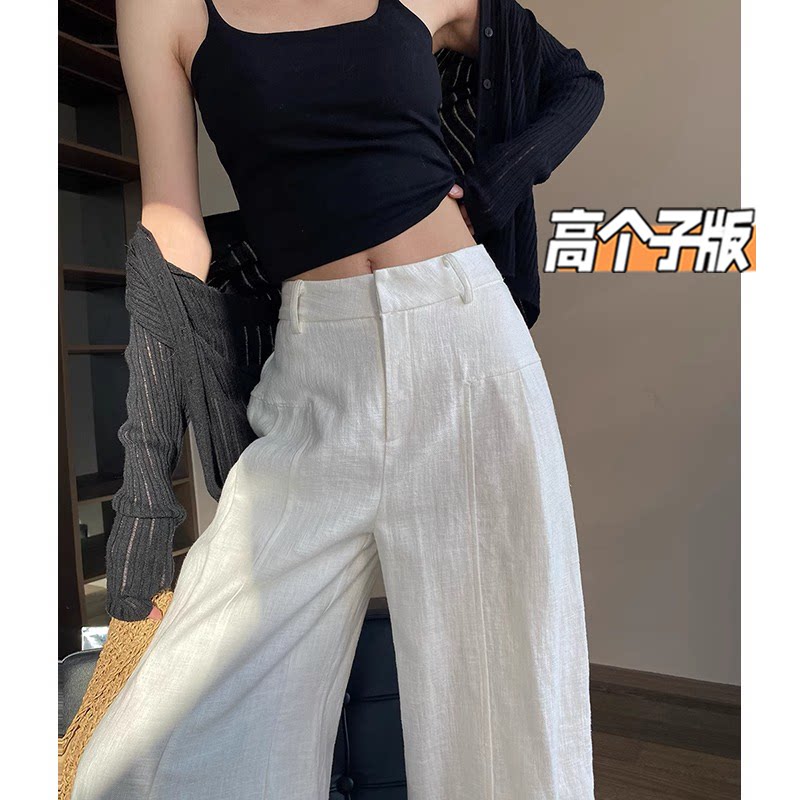 Tall extra-long white ramie suit pants women's summer thin high-waisted loose drape elongated straight wide-leg pants