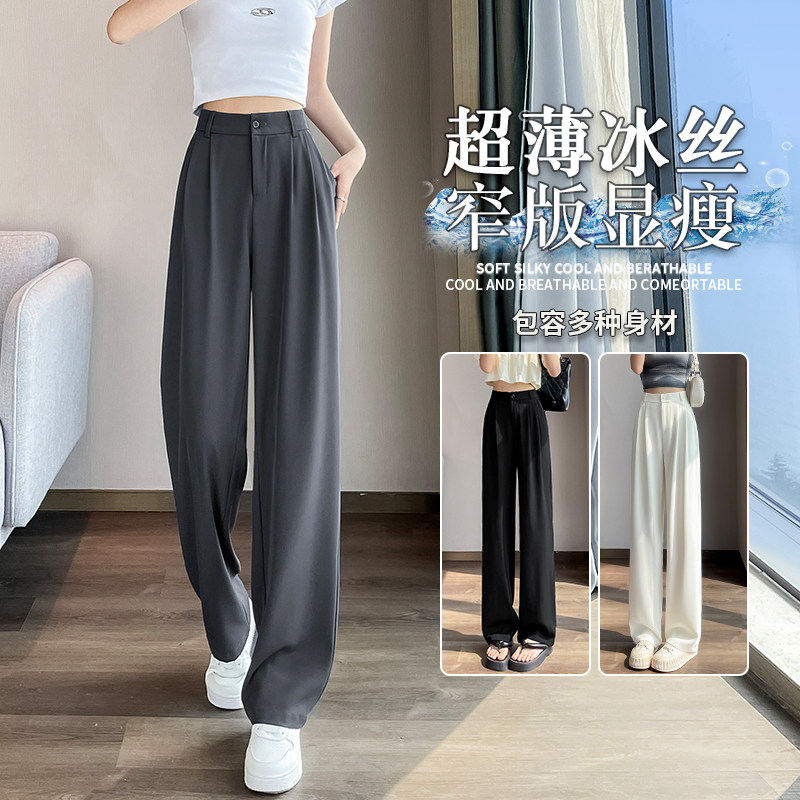White wide-leg pants women's summer thin 2026 new high-waisted drape loose straight-leg pants lazy loose suit pants