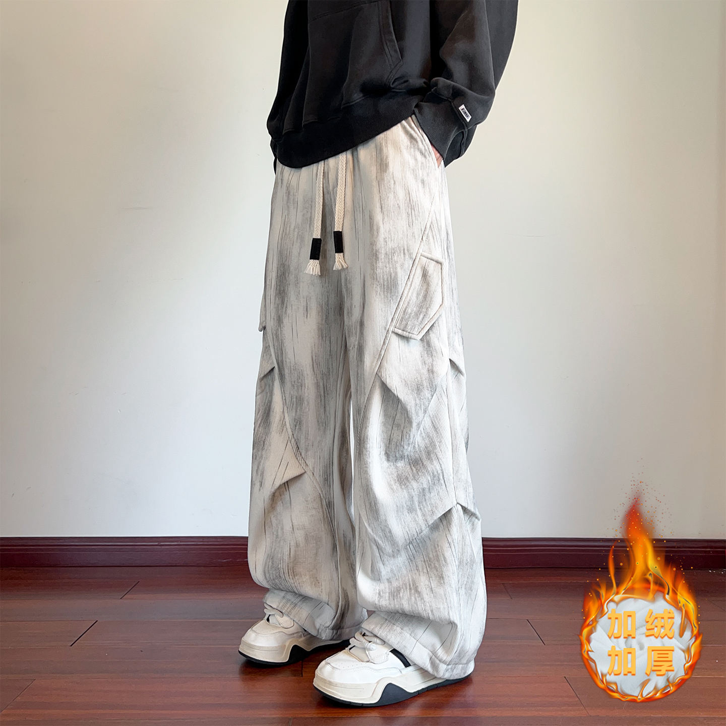 Fleece sweatpants, men's lamb-fleece, thickened pants in winter, loose slacks, cotton pants, fall and winter leggings