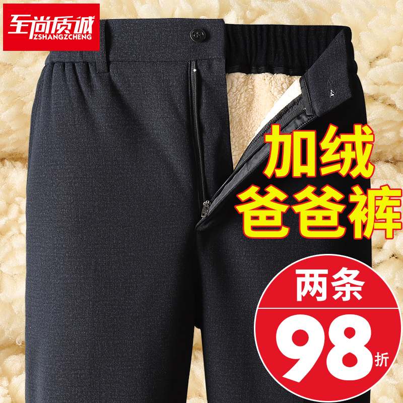 Dad fleece pants men's autumn and winter new middle-aged and elderly men's slacks for the elderly winter clothes thickened cotton pants to wear outside