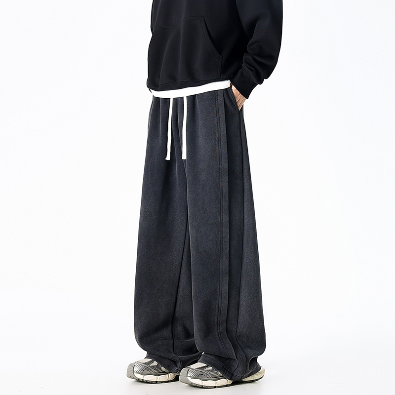 American retro 400G heavy fleece washed loose edge casual trousers loose drape sports straight sweatpants men