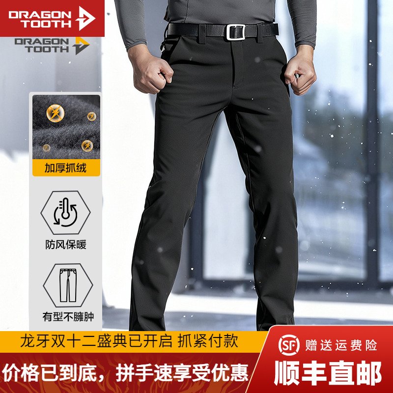 The second generation of dragon teeth hidden fierce warm softshell pants slim trousers with fleece in winter and thickened windproof warm pants for men