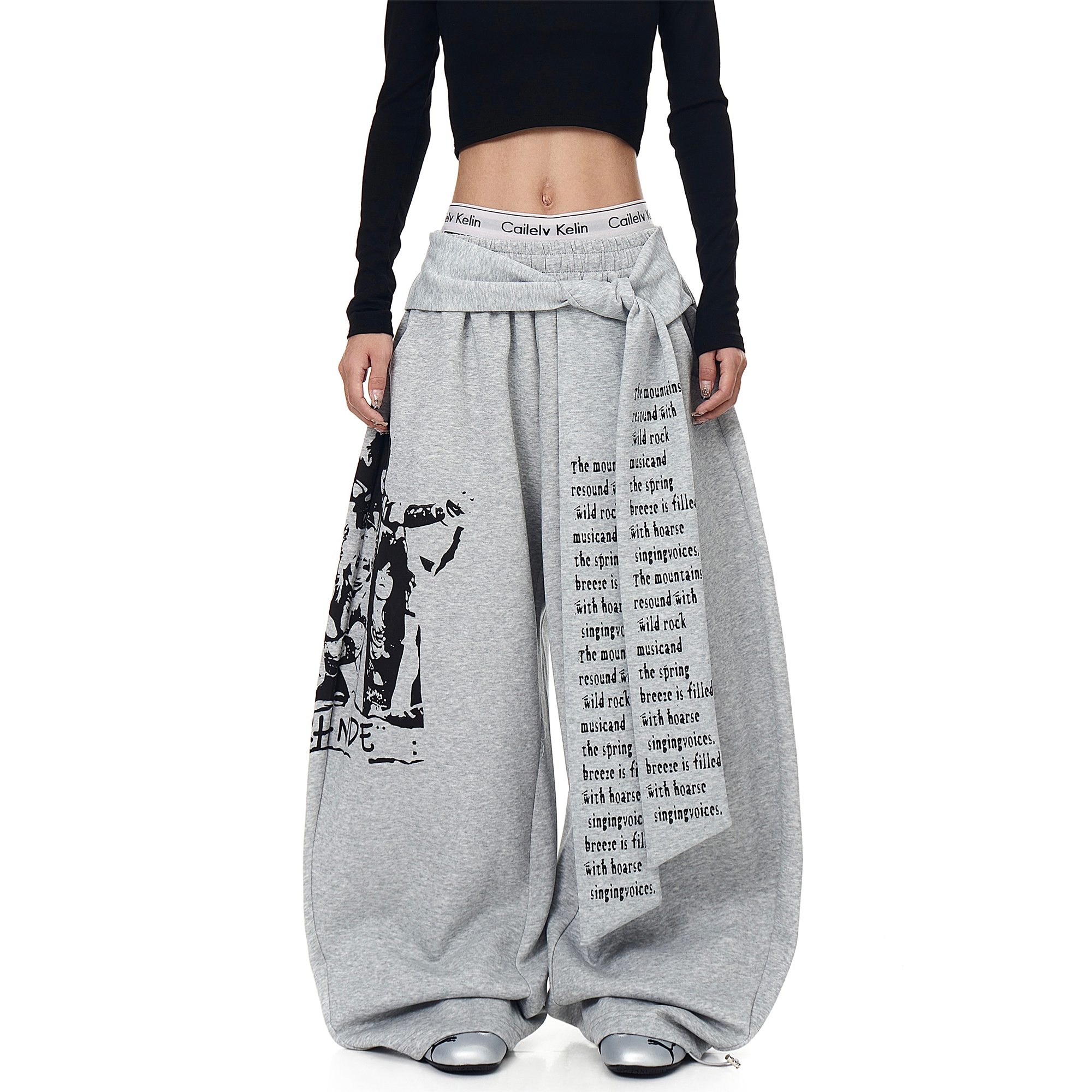 BLACKLISTS American vintage letterprint strap layered scimitar sweatpants men's and women's street dance fleece wide-leg pants