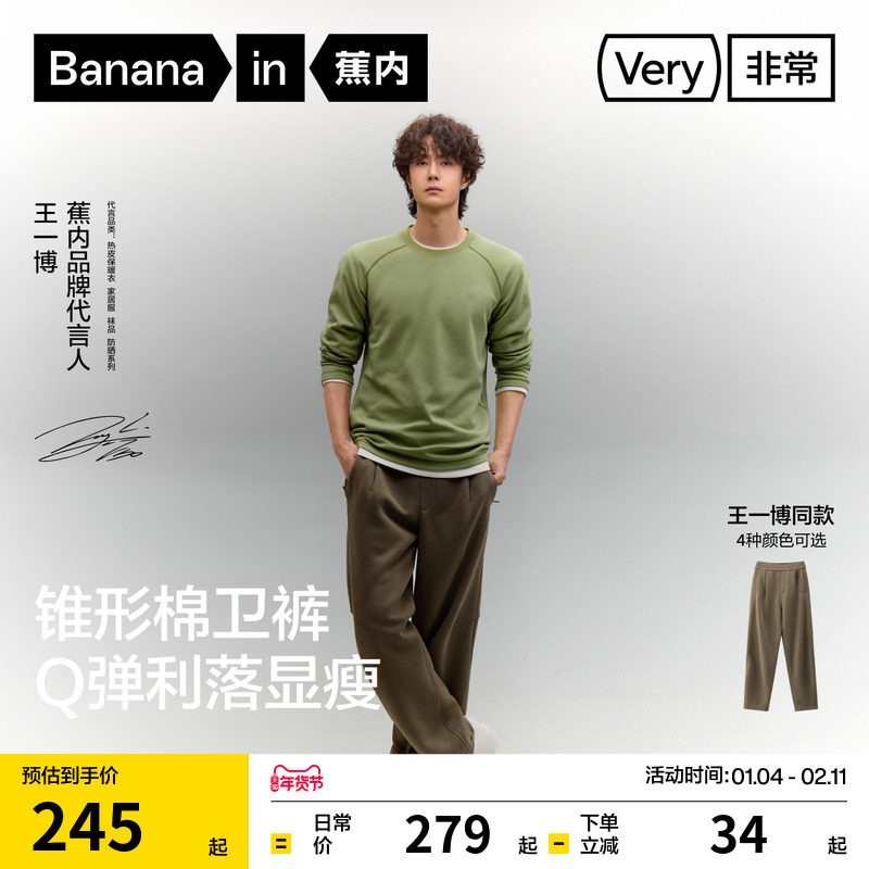 [Wang Yibo's same style] Banana Very 503 Regular Men's Air Cotton Tapered Sweatpants Plush Loose Pants