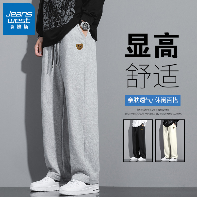 Zhenwei slacks, men's spring and autumn loose straight wide-leg sweatpants, plush knitted trousers, youth sweatpants