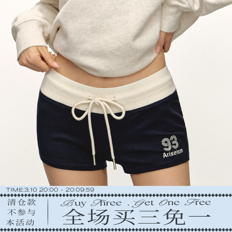 Ariseism American Spice Girl color-blocking wears comfortable sports shorts on the outside, women's new low-rise casual hot pants for summer