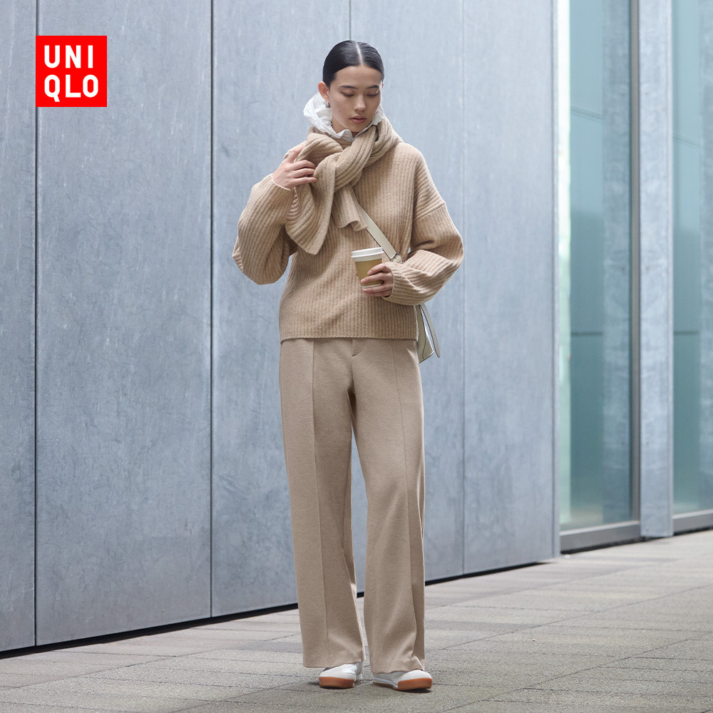 Gray glutinous rice pants women's spring and autumn 2025 new high-waisted drape casual small man autumn and winter knitted fleece wide-leg pants